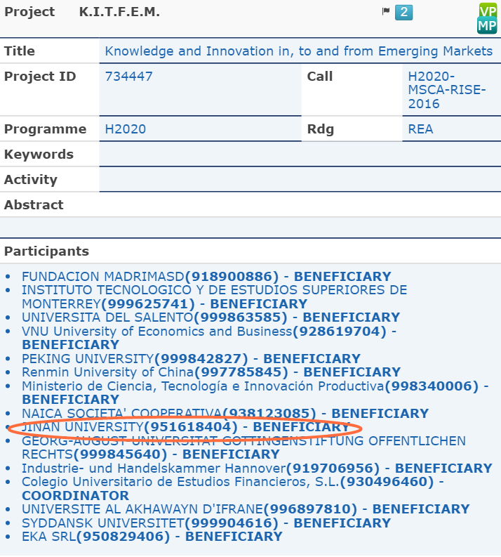 日前,我校管理学院产业技术经济与管理研究中心团队参与的国际合作研究项目“流入、流出和创造于新兴市场的知识与创新”,入围欧盟“地平线2020(H2020)——欧盟科研创新框架计划”,获得欧盟科研资助经费。这是我校研究团队继2013年获得欧盟第七科技框架计划后,再次入围欧盟科研资助项目。