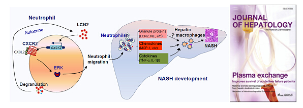 为了打造我校临床医学研究院代谢病研究高地,2015年8月,我校临床医学研究院与香港大学生物医药技术国家重点实验室共同组建“粤港代谢医学联合研究所”,引进高水平PI,与徐爱民教授率领的研究团队围绕我国日益严重的非酒精性肝炎问题开展联合研究。他们发现了Lipocalin-2介导的非酒精性肝炎通过CXCR2促进中性粒细胞和巨噬细胞之间的相互作用的分子机制,研究成果于2016年6月4日在线发表在肝病研究领域顶级期刊、欧洲肝病学会会刊《Journal of Hepatology》上(IF=11.336)。我校临床医学研究院为第一作者、第一通讯单位,叶得伟博士为第一作者,徐爱民、林绍强、汪玉教授为共同通讯作者(论文链接:http://www.journal-of-hepatology.eu/article/S0168-8278(16)30255-0/abstract)。