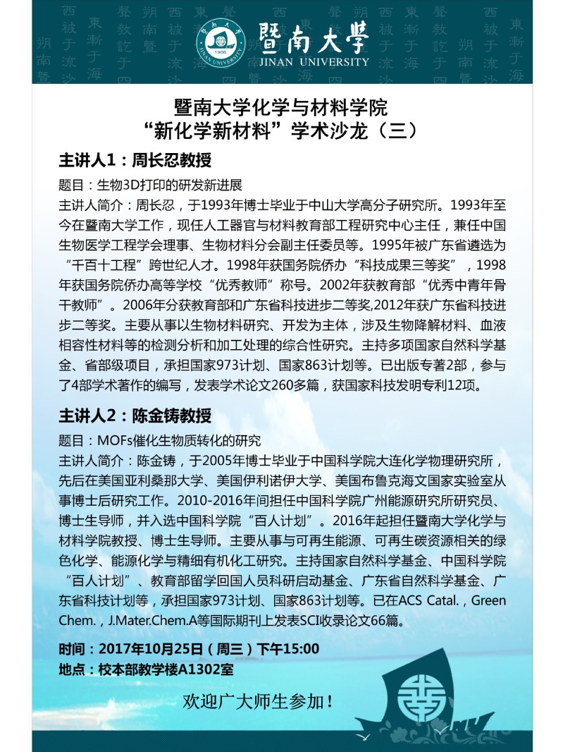 化学与材料学院“新化学新材料”学术沙龙(三)
