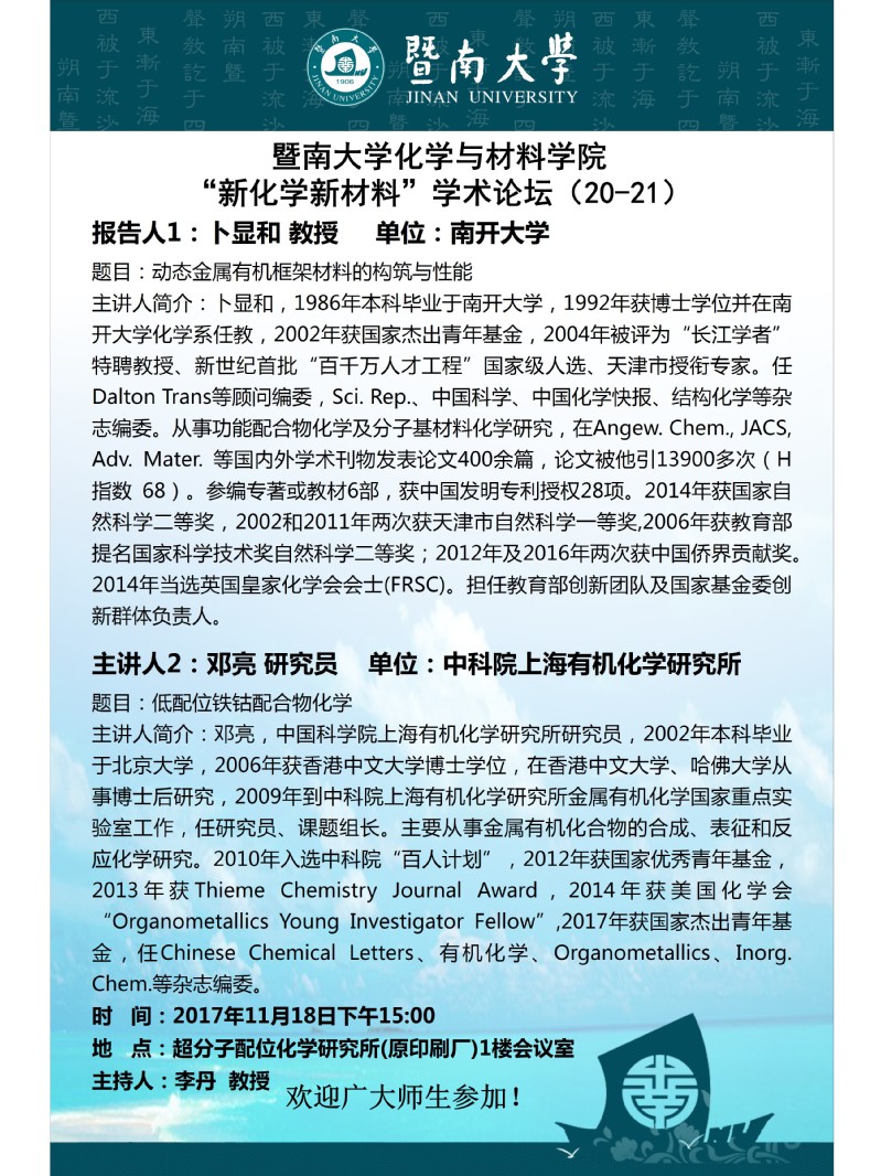化学与材料学院“新化学新材料”学术论坛(20-21)