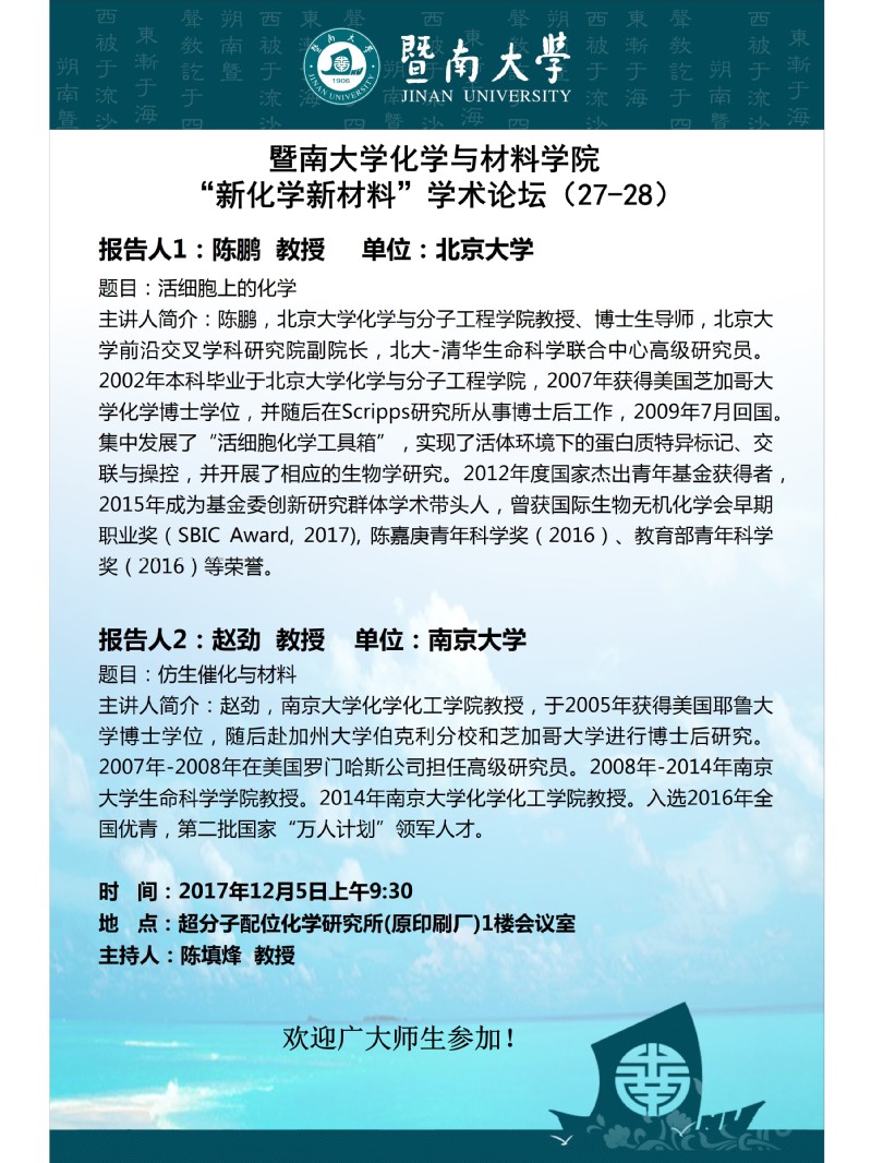 必威平台,必威(中国)一站式服务平台化学与材料学院“新化学新材料”学术论坛(27-28)