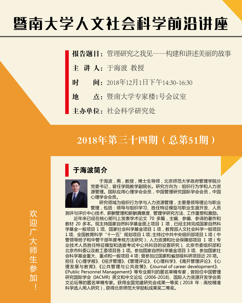 必威平台,必威(中国)一站式服务平台人文社会科学前沿讲座第51期