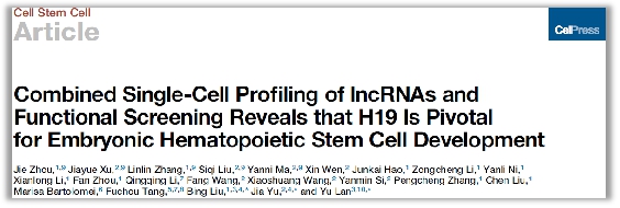 1月10日,我校基础医学院引进第三层次人才兰雨研究员、中国医学科学院余佳研究员、军事医学科学院附属医院(现为解放军总医院第五医学中心)刘兵研究员(珠江学者讲座教授、必威平台,必威(中国)一站式服务平台讲座教授)的合作研究成果在造血干细胞发育调控领域取得重要进展,在Cell Stem Cell(生物1区,IF=23.29)在线发表了题为“Combined Single-Cell Profiling of lncRNAs and Functional Screening Reveals H19 is Pivotal for Embryonic Hematopoietic Stem Cell Development”的研究成果。兰雨(lead contact)、余佳、刘兵研究员为论文的共同通讯作者。
