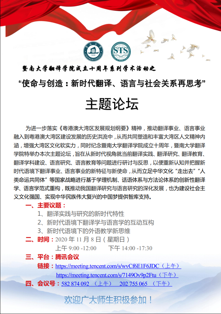必威平台,必威(中国)一站式服务平台翻译学院成立十周年系列学术活动之“使命与创造:新时代翻译、语言与社会关系再思考”