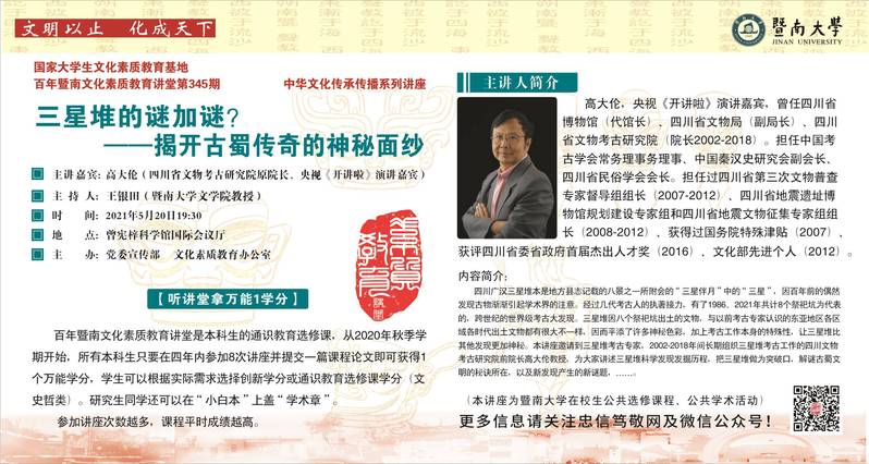 百年暨南文化素质教育讲堂第345期:三星堆的谜加谜?——揭开古蜀传奇的神秘面纱