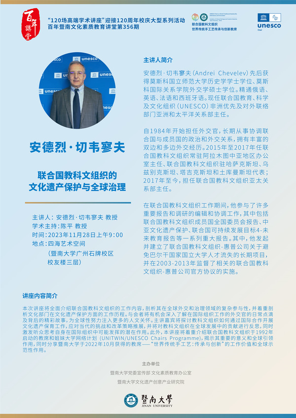 百年暨南文化素质教育讲堂第356期:倾听文化遗产的“心声”——联合国教科文组织的文化遗产保护与全球治理