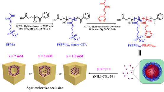 聚(甲基丙烯酸3-磺酸丙酯钾盐)41-b-聚(甲基丙烯酸苄酯)500[PSPMA41-PBzMA500]的合成及其在方解石晶体中的空间选择性内嵌。