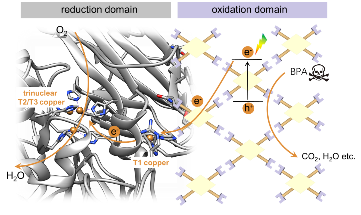 自然界中,光合作用是光-酶催化的典型代表。叶绿素分子吸收太阳光子,在酶的帮助下,通过一系列复杂的化学反应将其转化成自身能量。受此启发,科学家们开发了一系列光-酶催化剂,希望在低能耗和低成本的条件下实现太阳光的高效利用。然而,当前光催化剂与生物酶之间的电子转移效率低下、生物兼容性差以及高昂的辅助介质成本,极大地限制了该技术的应用。