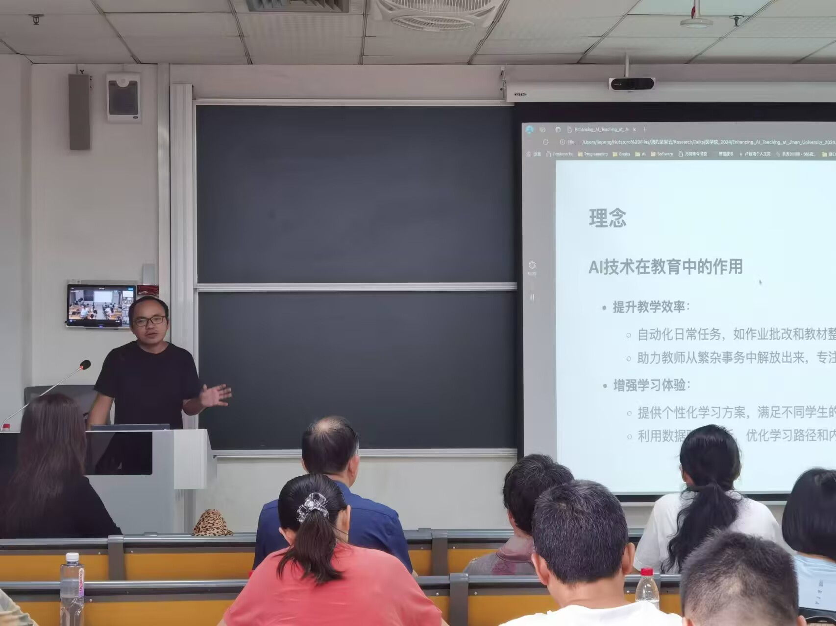 必威平台,必威(中国)一站式服务平台融媒体中心讯 9月12日下午,由本科生院教师发展中心组织举办的“品味教学”第53期:“如何以‘人工智能+’赋能课堂教学”在石牌校区教学大楼A507室举行。讲座由我校教学名师、全国高校教师教学创新大赛二等奖获得者、物理与光电工程学院教师刘鹏担任主讲嘉宾,不同学科的教师齐聚热议“人工智能+”。讲座由本科生院教师发展中心主任张沫主持。