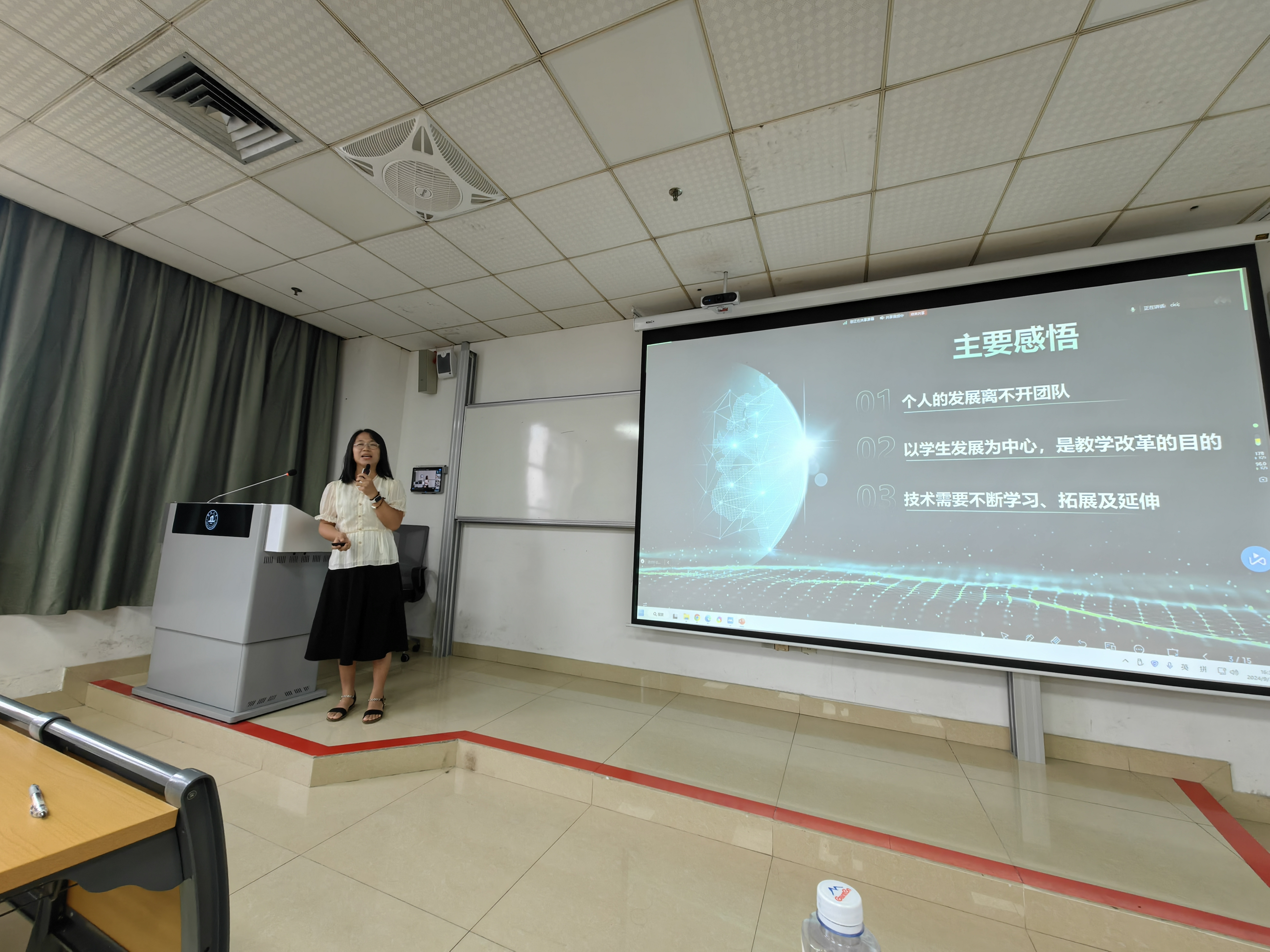谢贤芬分享了团队中教师之间相互“传帮带”的生动感悟。她谈到:“团队合作是个人成长的基石,学生创新能力的培养是教育的核心目标,而技术的不断创新、融合以及延伸,则是推动教学改革的重要力量”。