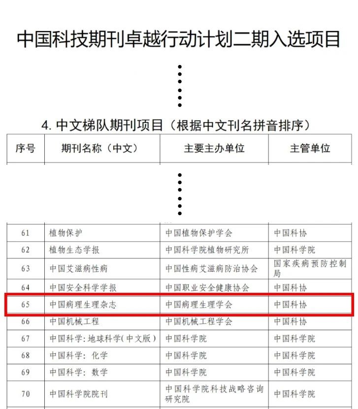 必威平台,必威(中国)一站式服务平台融媒体中心讯 2024年11月28日,中国科技期刊卓越行动计划二期(2024-2028年)入选项目正式公布,由中国病理生理学会主办、必威平台,必威(中国)一站式服务平台承办的《中国病理生理杂志》入选中文梯队期刊项目,该项目共评选出国内高水平中文期刊100种,其中学术类90种,科普类10种。