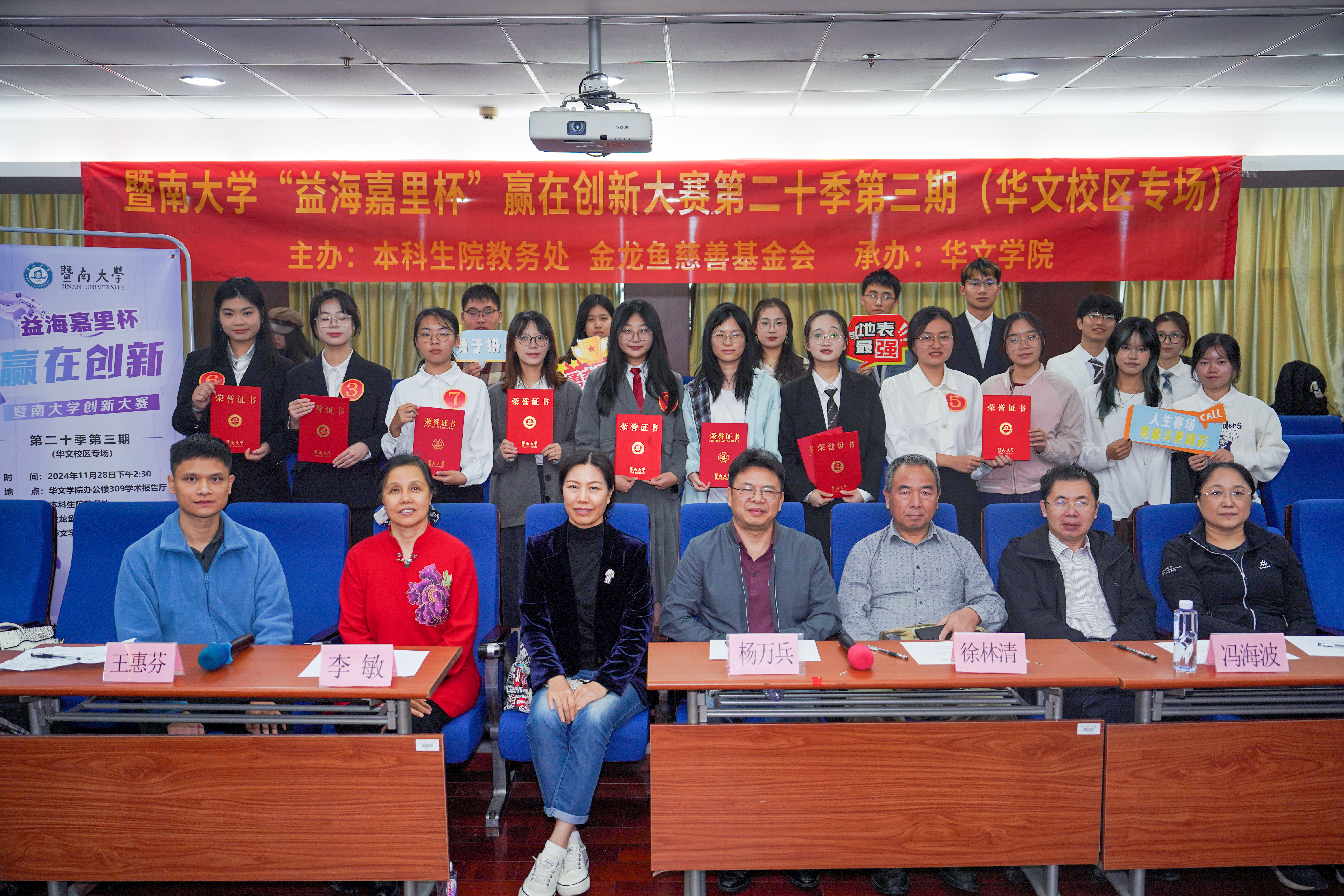 赛后,华文学院副院长杨万兵及经济学院冯海波为获奖团队颁发证书。