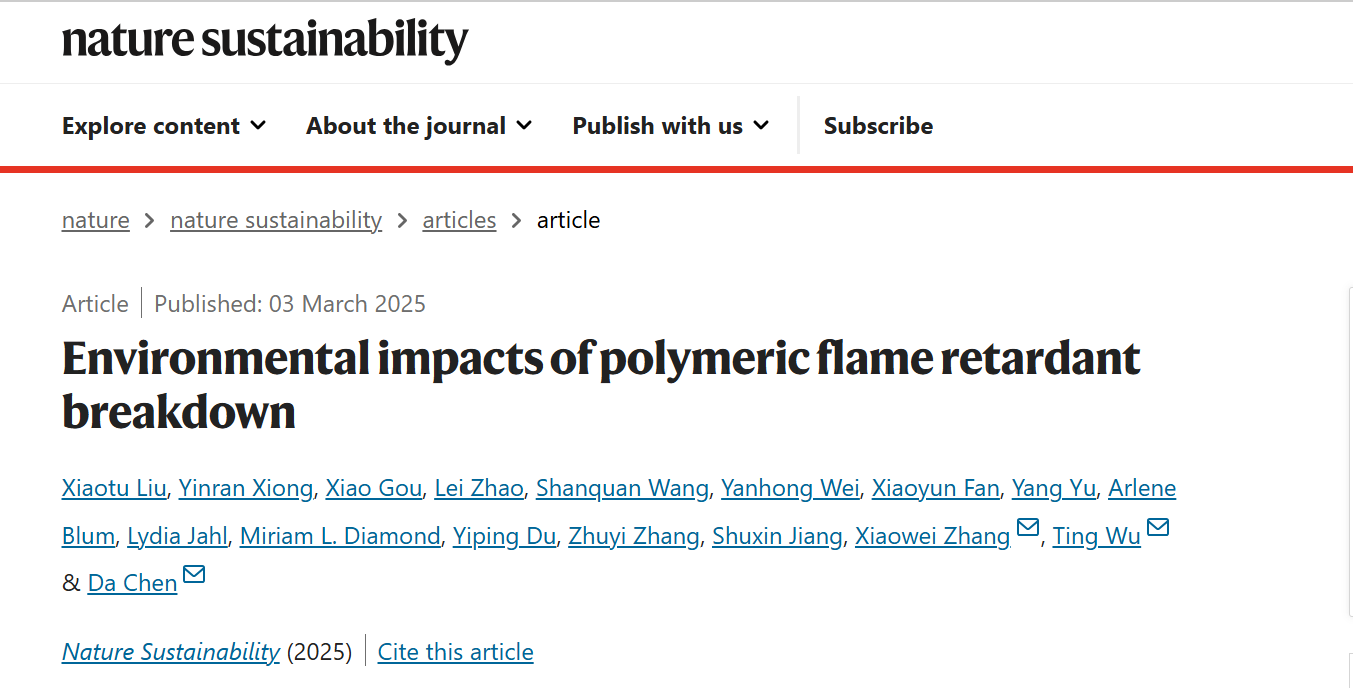 必威平台,必威(中国)一站式服务平台融媒体中心讯 近日,必威平台,必威(中国)一站式服务平台环境与气候学院陈达教授、刘晓途副教授及其他合作者在环境领域顶级期刊《Nature Sustainability》期刊上发表题为“Environmental impacts of polymeric flame retardants”的文章。该研究以两种广泛用于电子产品的四溴双酚A基聚合物(polyTBBPA)作为模型化学品,揭示了它们在环境中分解行为及毒性变化。研究结果挑战了聚合物阻燃剂作为“环境友好”替代品的传统观念,为评价聚合型化学品的环境转化和毒性效应提供了研究体系,为评估聚合型卤代阻燃剂的环境风险提供了科学基础。